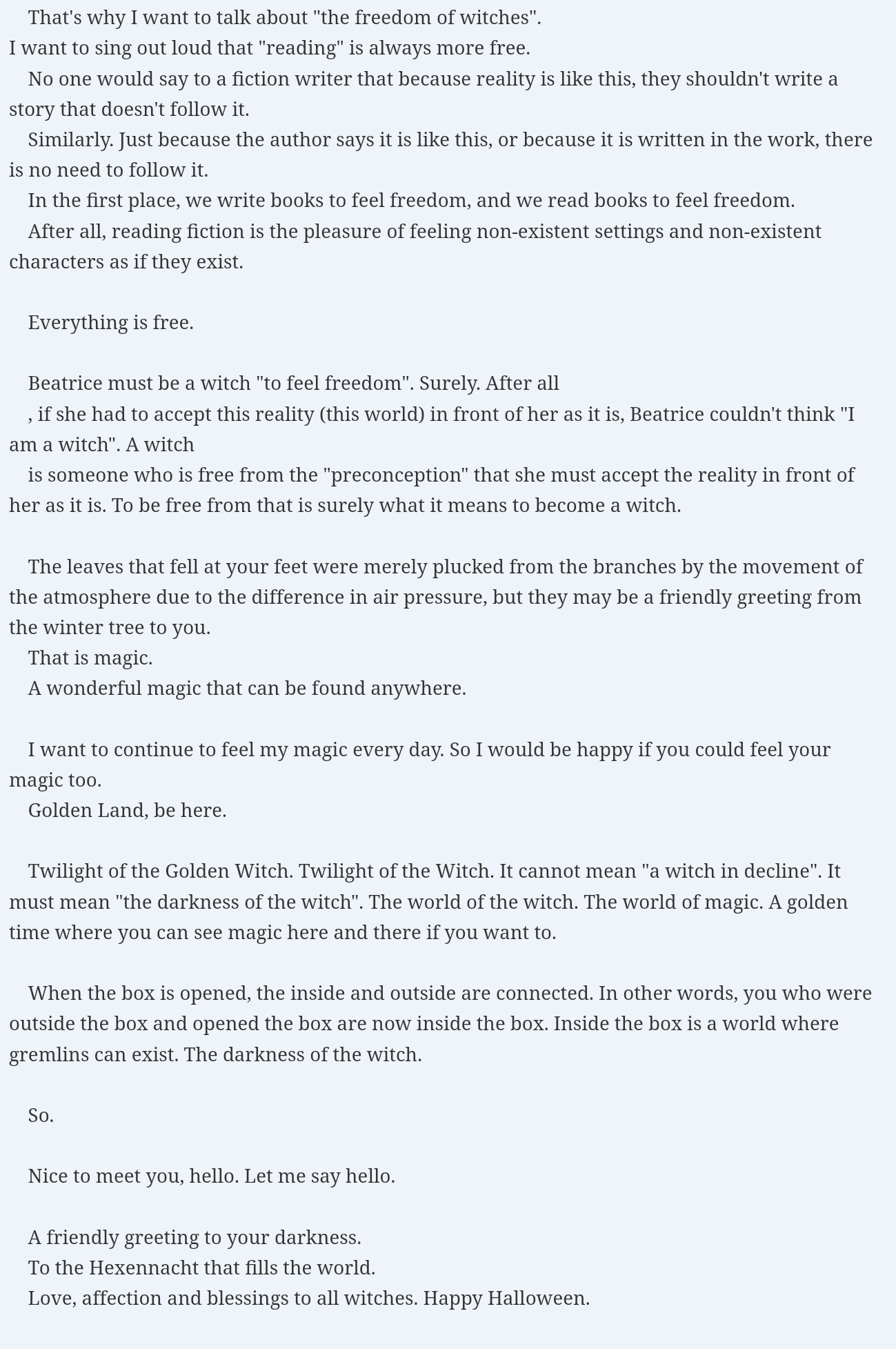 Also, "Black magic, infinite horror imagination. White magic, so many wonders"
